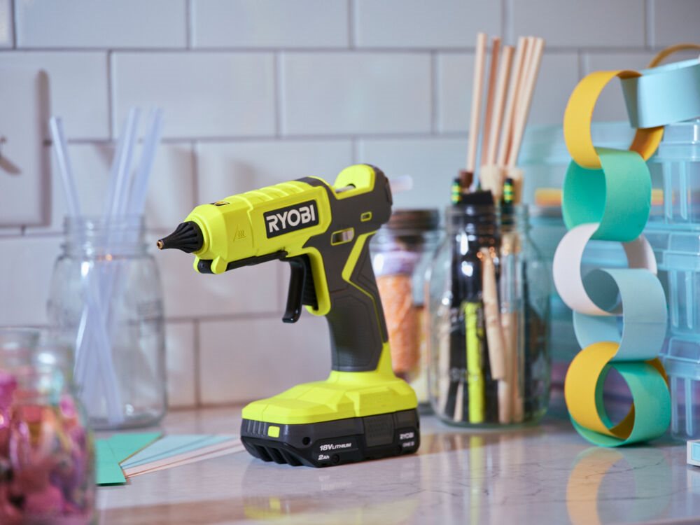 Najlepszym wyborem będzie pistolet do kleju na gorąco z regulacją temperatury, ponieważ dzięki temu można kleić bez obaw o uszkodzenie materiałów. Taką funkcję mają pistolety do kleju RYOBI®.