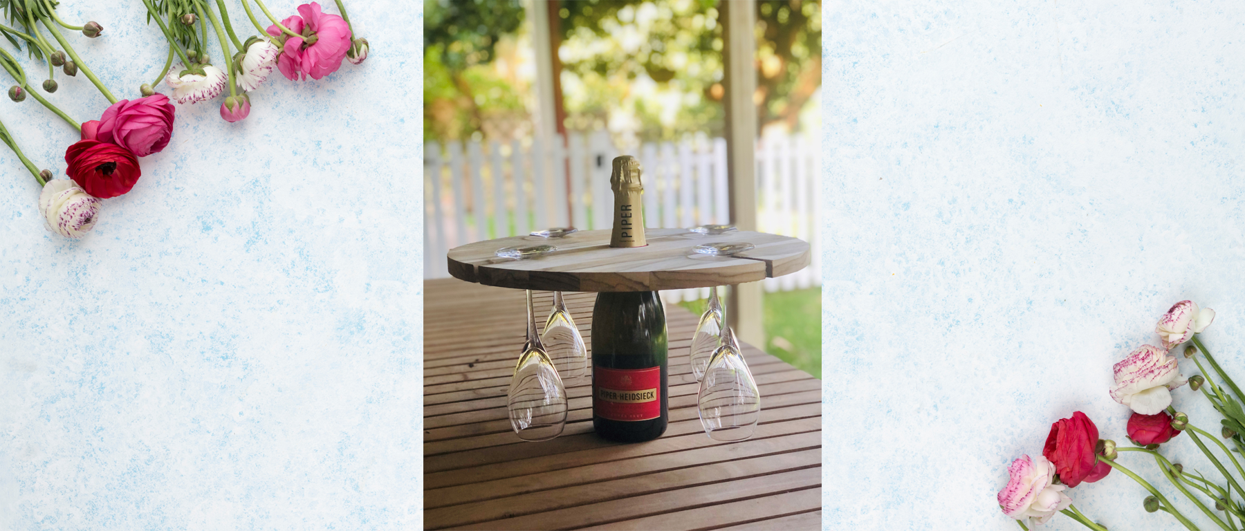 Krok czwarty - Za pomocą wiertła łopatkowego wywierć otwory na uchwyty na kieliszki do wina. Zrobiliśmy średnice 2cm.